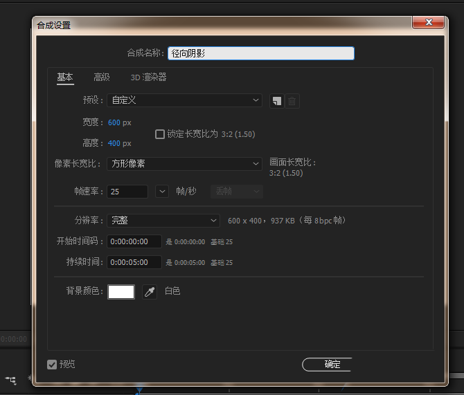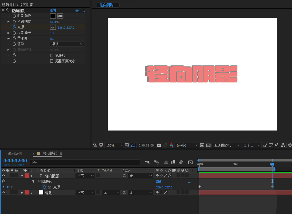 1、打開AE軟件,命名徑向陰影,調(diào)整相應的參數(shù)。