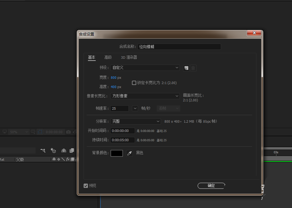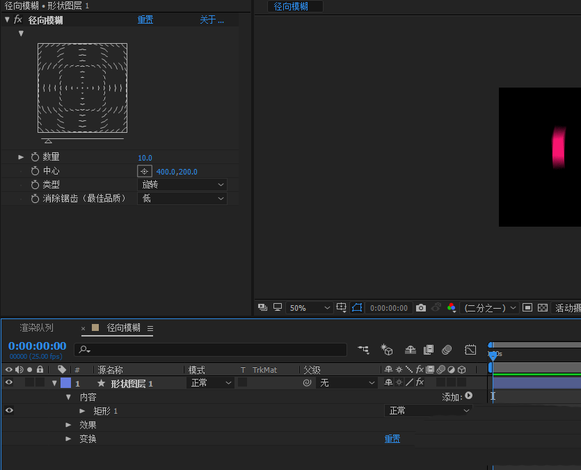 1、打開AE軟件,命名徑向模糊,調整相應的參數。