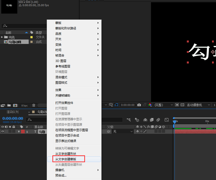 3、選中文本圖層,右擊選擇從文字創(chuàng)建蒙版;就會(huì)生成一個(gè)對(duì)應(yīng)的文字輪廓圖層;