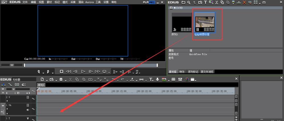 打開EDIUS軟件,在素材面板空白處用鼠標雙擊,導入視頻文件,