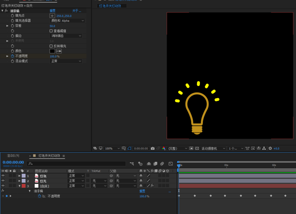 以上就是AE制作燈泡開關燈的動畫效果的教程,希望大家喜歡,請繼續關注武林網。