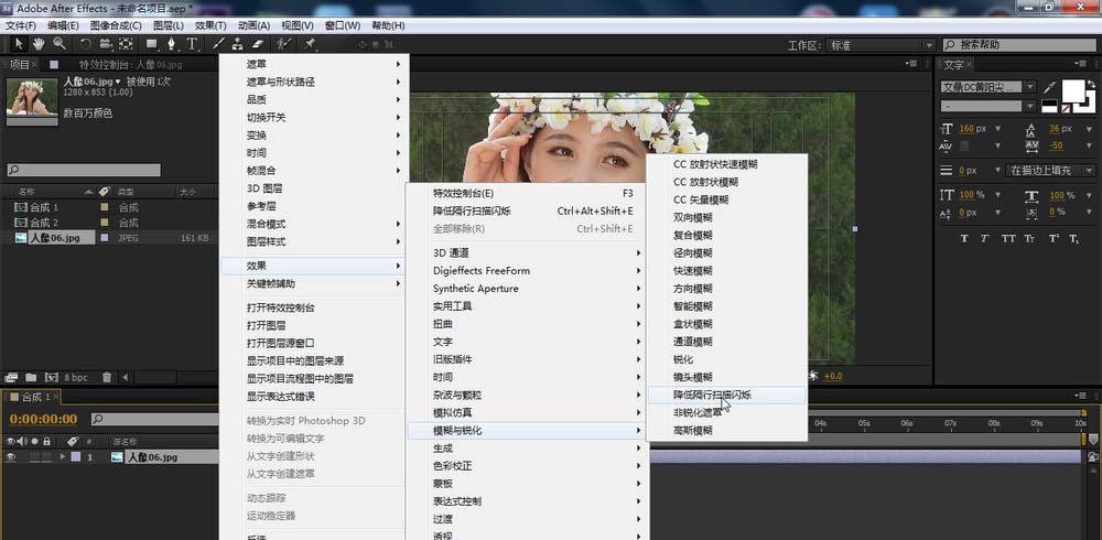 4、這個效果還可以這樣添加:上方的:效果-模糊與銳化-降低隔行掃描閃爍
