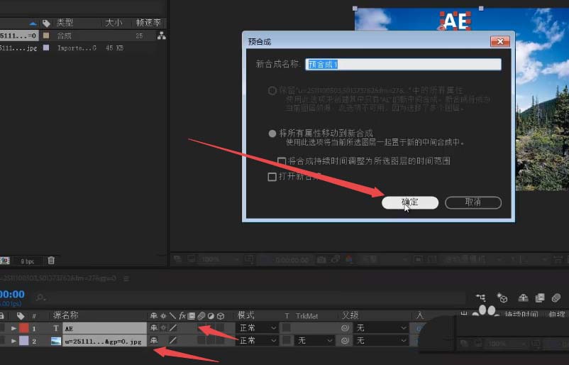 4、然后選中這個兩個圖層,我們進(jìn)行預(yù)合成