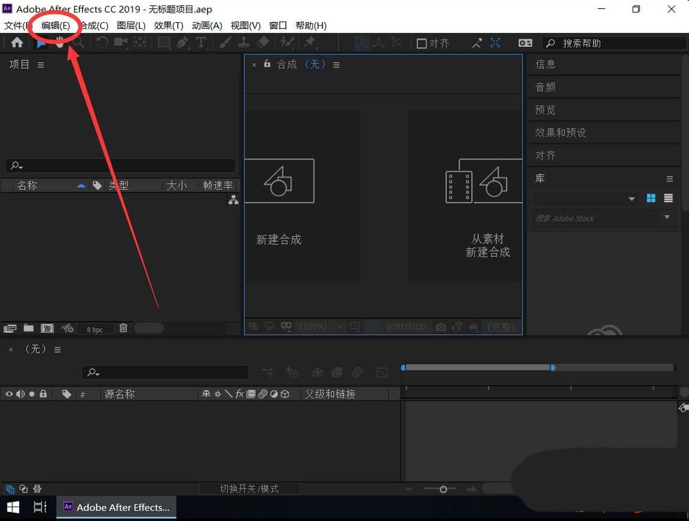 1、首先雙擊打開“Adobe After Effects CC 2019”
