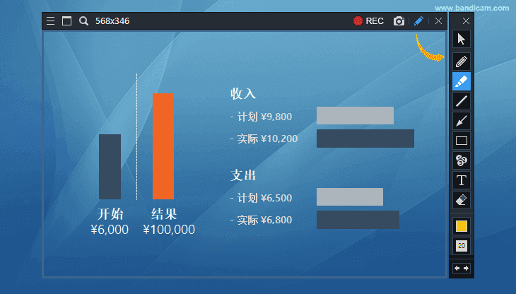 錄制視頻時,可以劃線、熒光筆、畫框、點擊鼠標動畫效果等。
