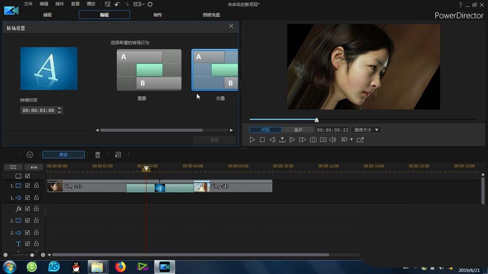 威力導演怎么給素材添加繞底部中心逆時針旋轉轉場效果?