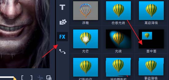 2、接下來,在濾鏡中找到畫中畫濾鏡,將畫中畫濾鏡拖拽到這個圖片上。