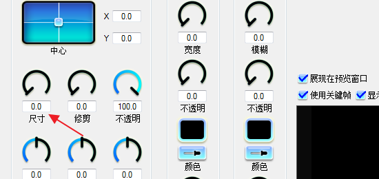 6、隨后,我們先將播放幀拖拽到起始位置,然后將尺寸調整到0。
