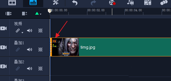 1、我們打開會聲會影2018中文版軟件后,先把圖片放到覆疊軌里,并且將圖片調整到屏幕大小。