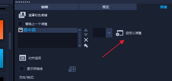 3、接下來,我們點擊屬性,點擊自定義濾鏡,我們就開始了對這個畫中畫的自定義。