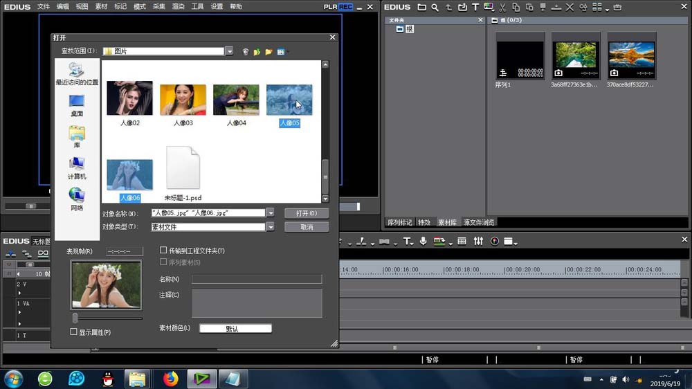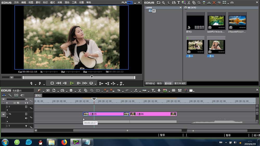 2、將素材庫里的圖片或者視頻拖拽到時間線上的視頻軌道
