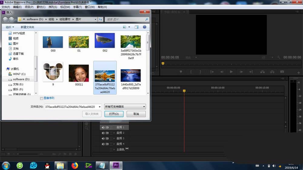 2、在premiere的素材庫中,導入圖片或者視頻素材。