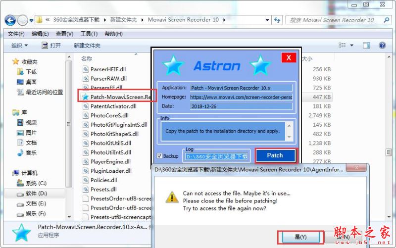 2.將文件“Patch-Movavi.Screen.Recorder.10.x-Astron.exe”復制粘貼到軟件目錄。