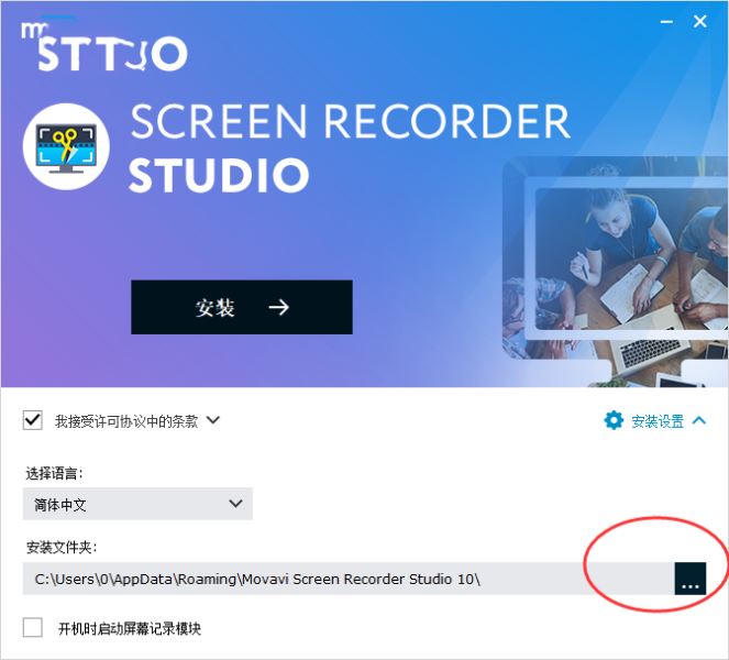 4、如圖所示,語言默認簡體中文,選擇軟件安裝路徑,點擊安裝
