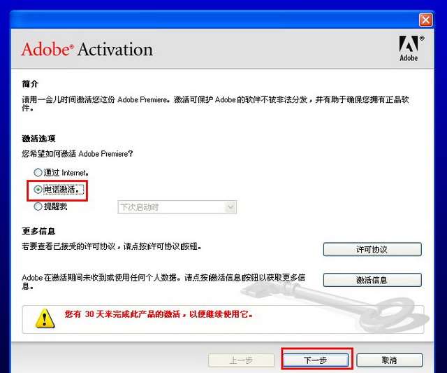 勾選“電話激活”然后點擊“下一步”如圖9。