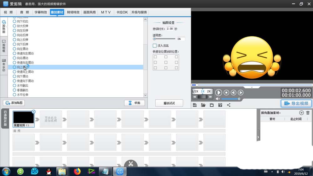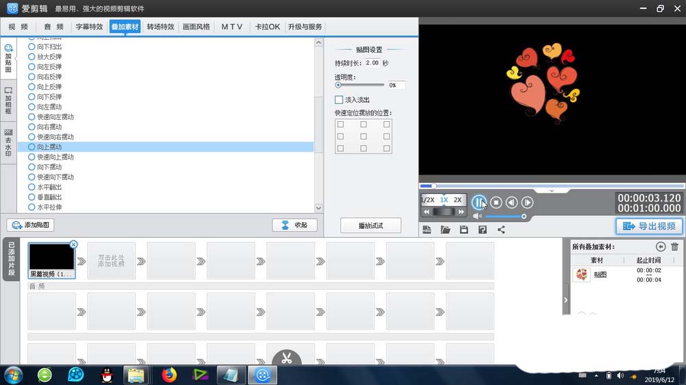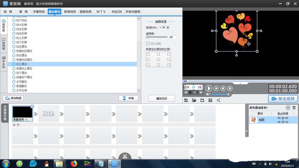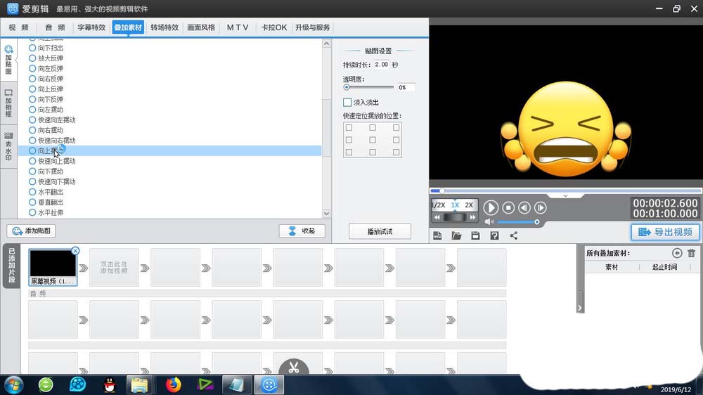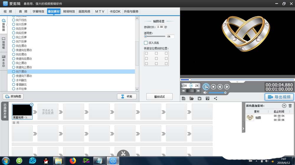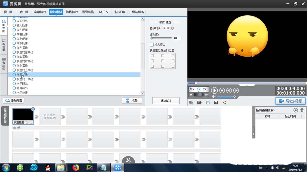 1、首先這個向下擺動 -是在愛剪輯里面的疊加特效-加貼圖-常用特效-里面可以找到