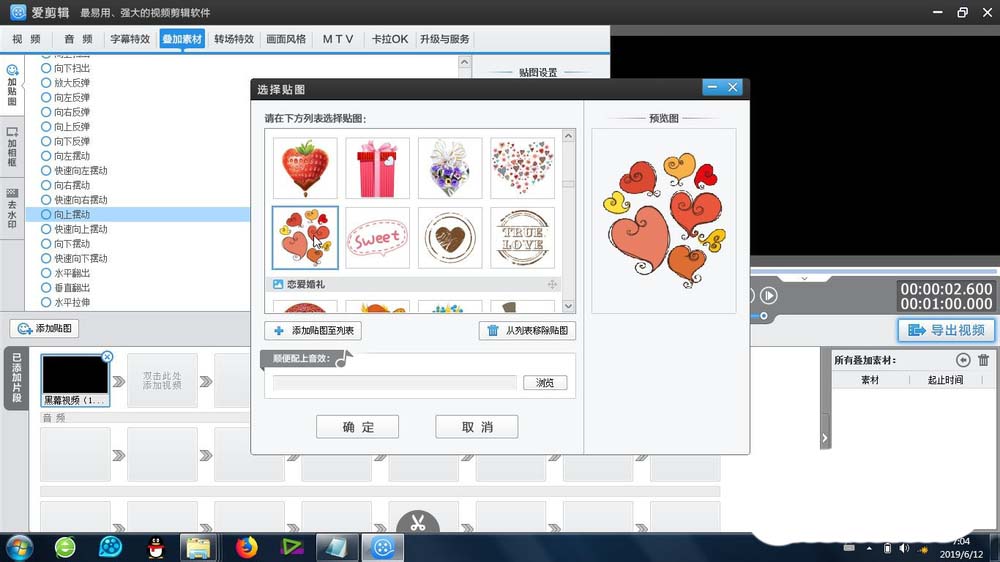 3、愛剪輯自帶的貼圖有很多,我們可以在其中進行選擇,選中滿意的,進行導入