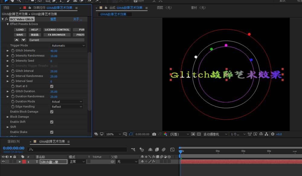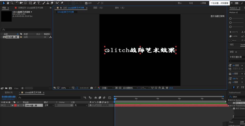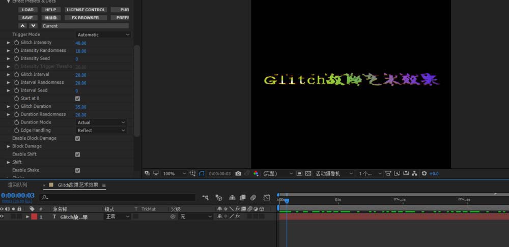 4、選中文本圖層添加BCC Video Glitch插件;