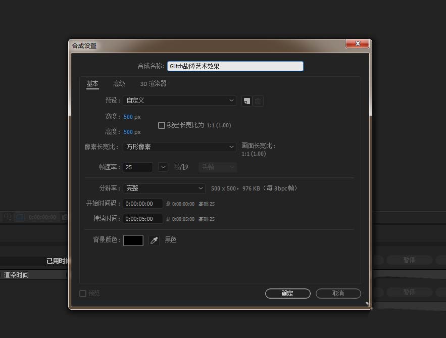 1、打開AE軟件,新建合成,命名Glitch故障藝術效果,調整相應的參數