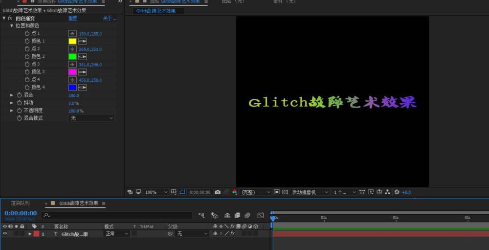 5、添加Glitch效果之后,按下空格鍵就已經有故障藝術的效果了;是不是很快,大家可以去嘗試一下調整其他參數會帶來什么樣的效果;
