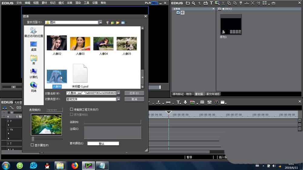 2、將素材庫里的圖片或者視頻拖拽到時間線上的視頻軌道