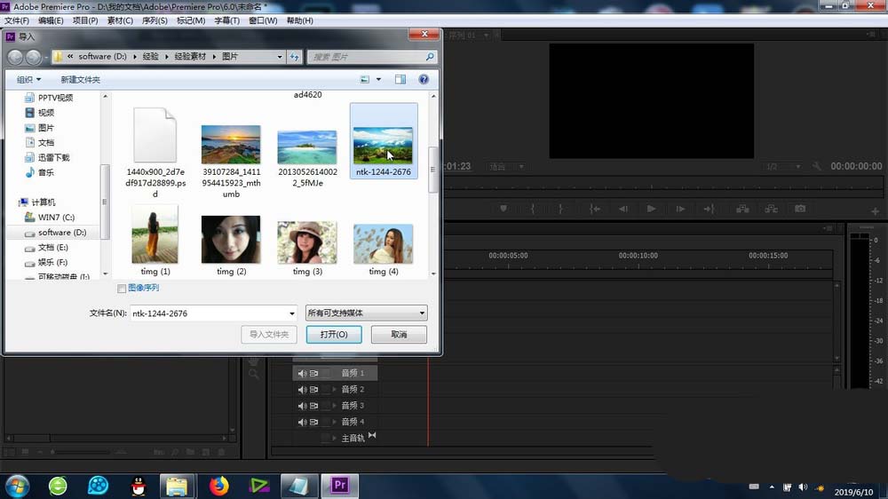 2、再有就是將速到進行導入素材庫(圖片或者視頻都可以)