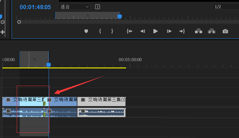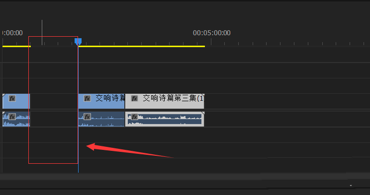 4、可以看到素材被刪減掉了,同時時間線上留下了空隙。