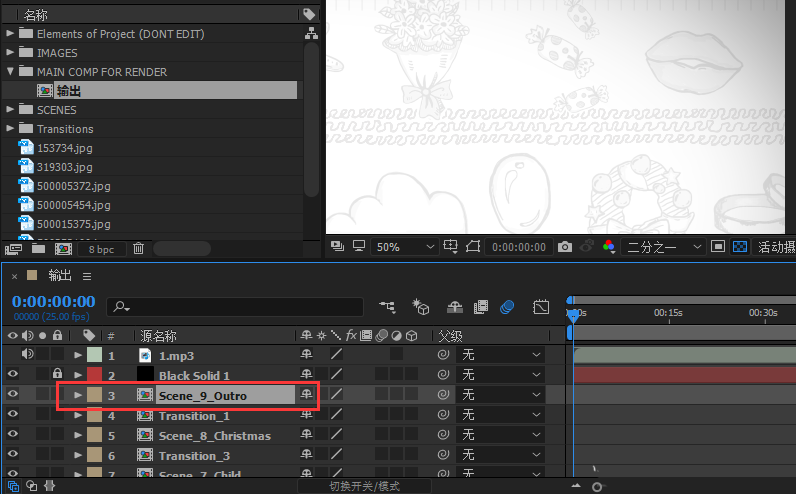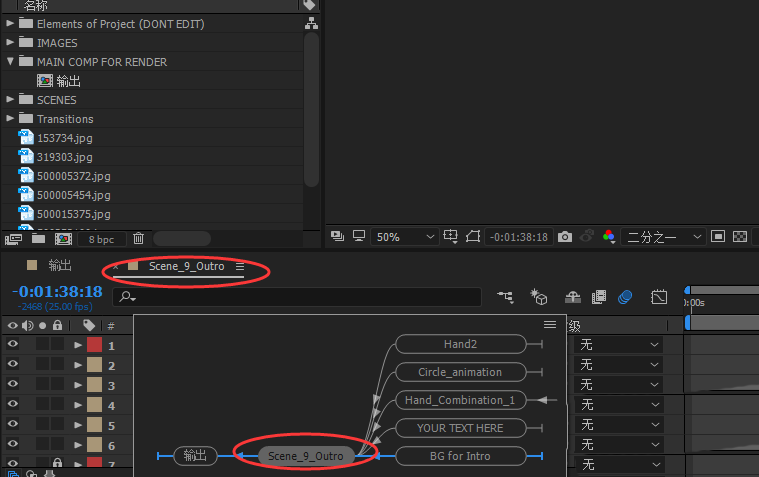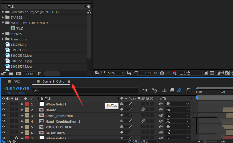 4、如下圖所示,當(dāng)前合成為AE模板的復(fù)合成
