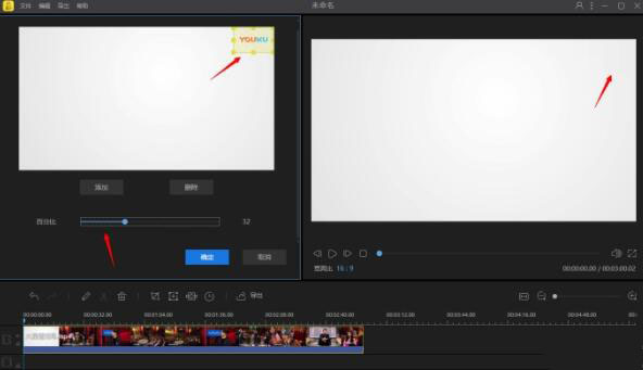 將此矩形拖至水印處,遮住水印,拖拉下方的百分比按鈕,可以對馬賽克遮蓋程度進行調整,然后點擊確定。