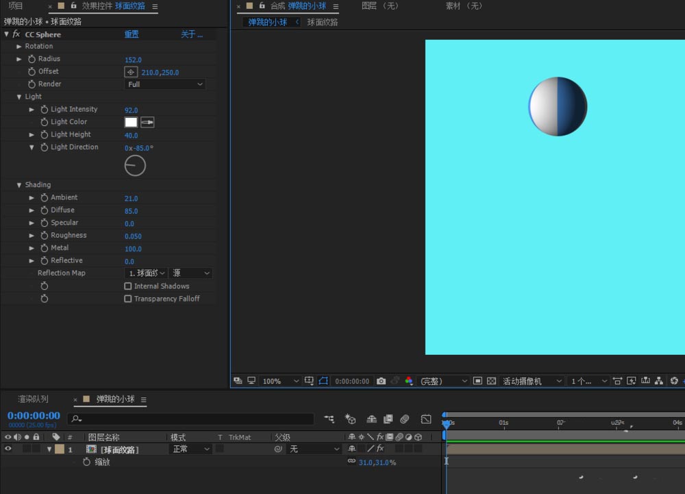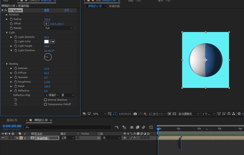 5、選中球面紋路,添加CC sphere球效果;調整相應的參數得到如下立體球;