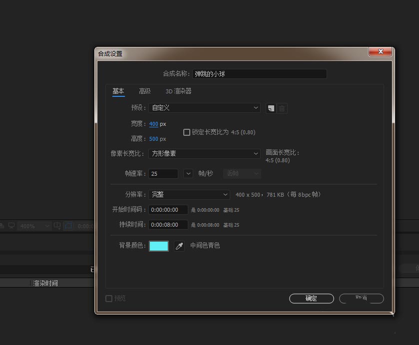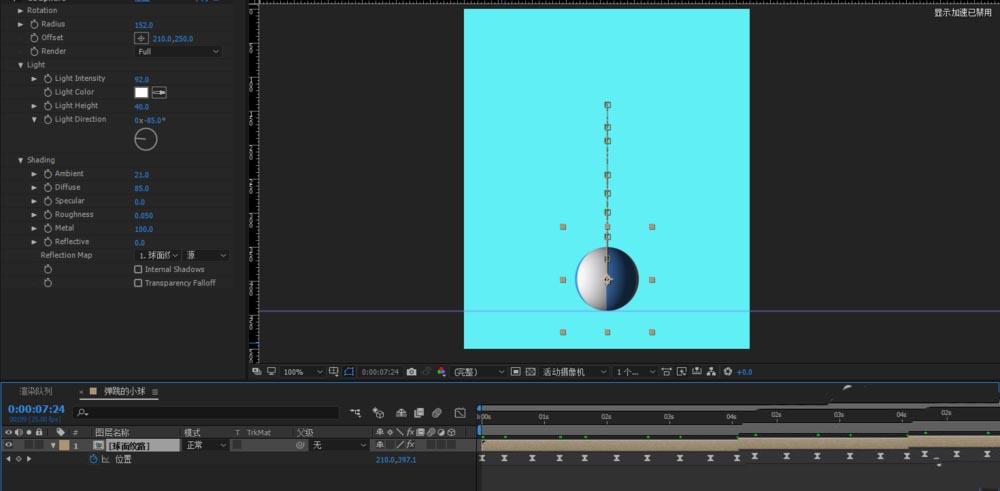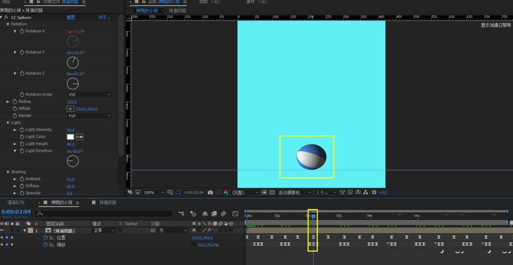 1、打開AE軟件,命名彈跳的小球,調整相應的參數。