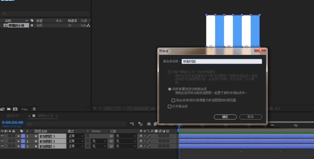4、選中所有的形狀圖層,ctrl+shift+c預合成命名為球面紋路;