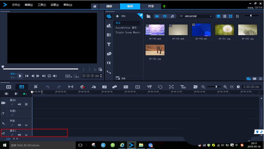 7、第五個(gè)是“音樂(lè)軌”,與聲音軌類似,用于存放音頻,錄制的旁白只能放在聲音軌上
