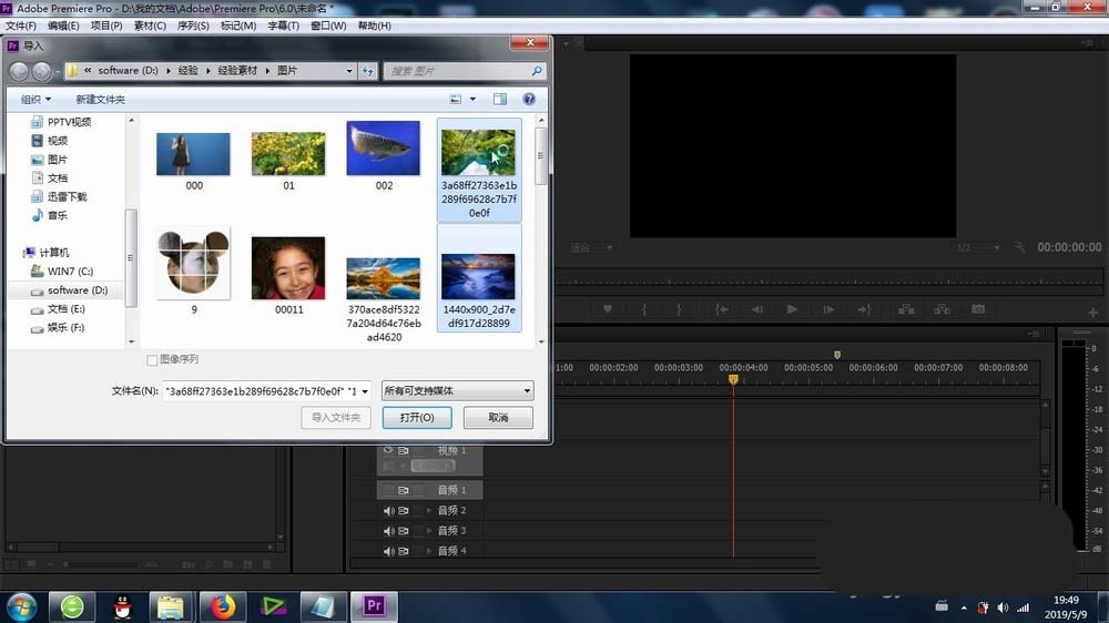2、在接下來(lái)就是更加熟悉的操作步驟:素材的導(dǎo)入(圖片或者視頻都可以)