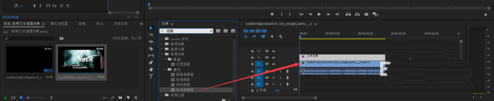4、然后再效果控件里面選擇 遮罩-軌道遮罩-作用于視頻1圖層
