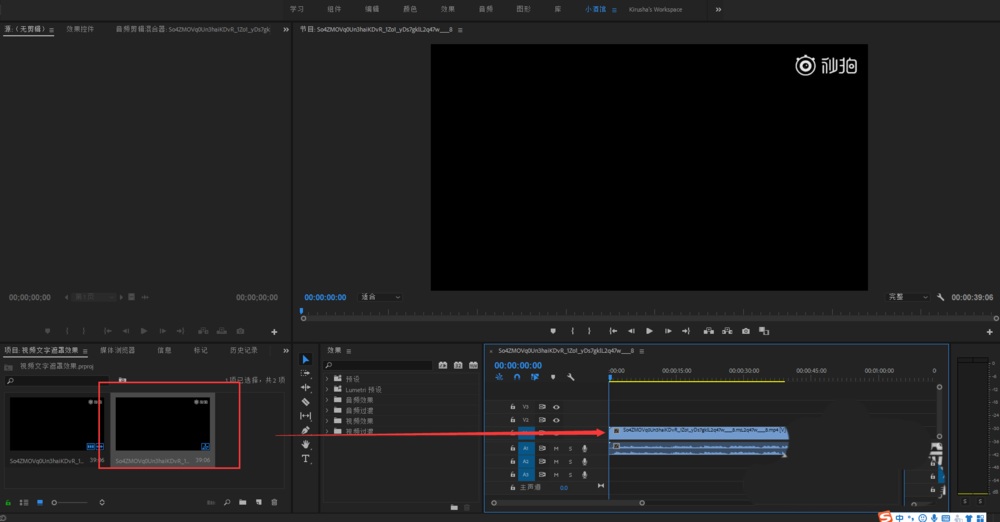 2、可以根據自己的需求新建一個序列,然后拖入視頻素材,我這邊直接拖入視頻素材,然后將視頻素材拖到時間線