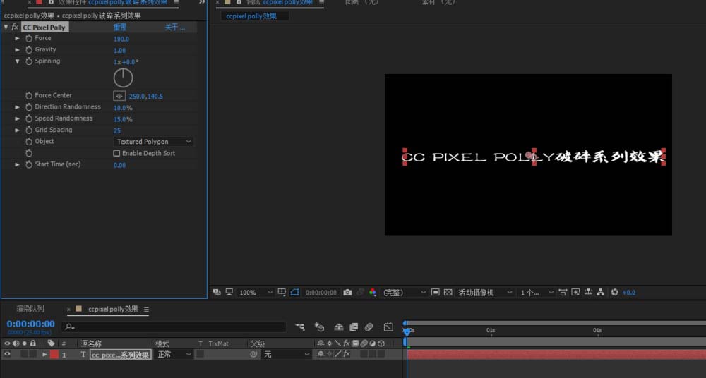 2、ctrl+t輸入想要的文本內容:cc pixel polly破碎系列效果