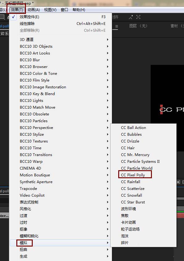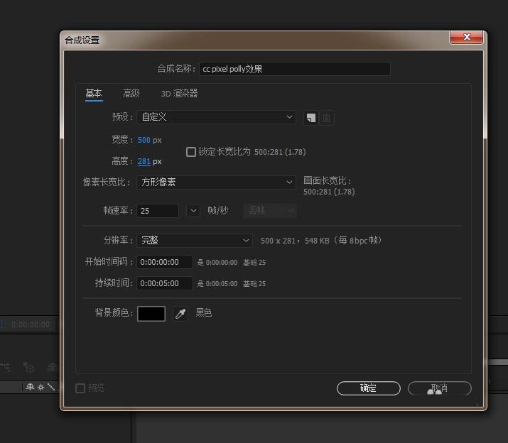 1、打開AE軟件,新建合成,命名 cc pixel polly效果,調整相應的參數。