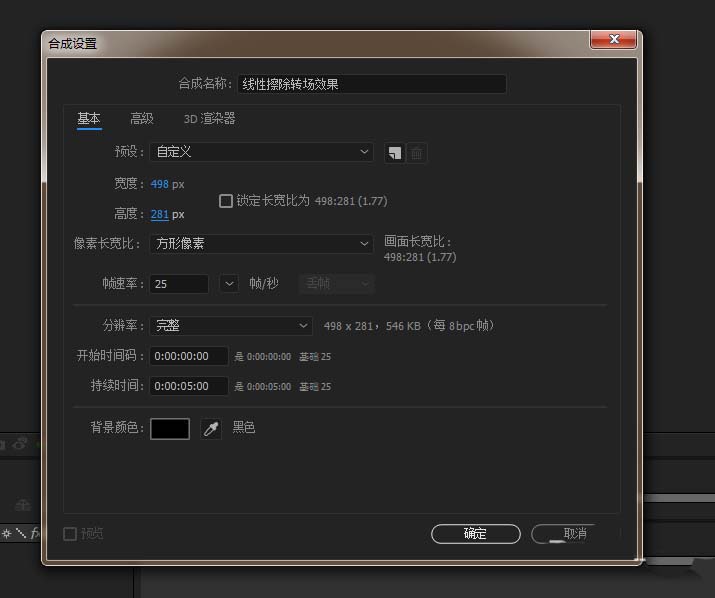 1、打開AE軟件,新建合成,命名線性擦除轉場效果,調整相應的參數。