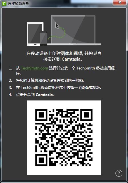 彈出一個對話框,根據提示操作,先在手機中下載安裝TechSmith軟件,打開該軟件,選擇視頻進行分享,