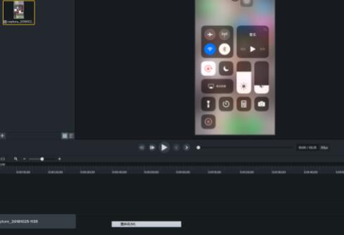 上傳成功,如圖,軟件媒體箱中會顯示視頻文件,視頻也會顯示在時間軸上,點擊播放然后可以進行相關編輯。