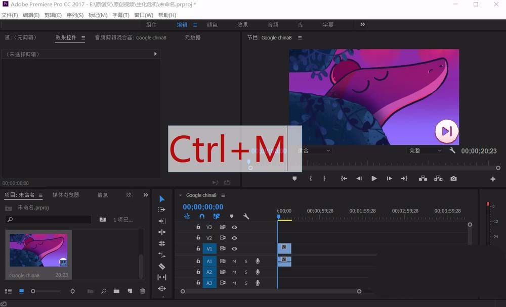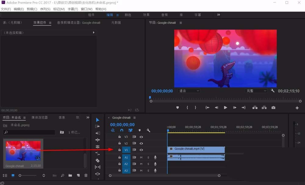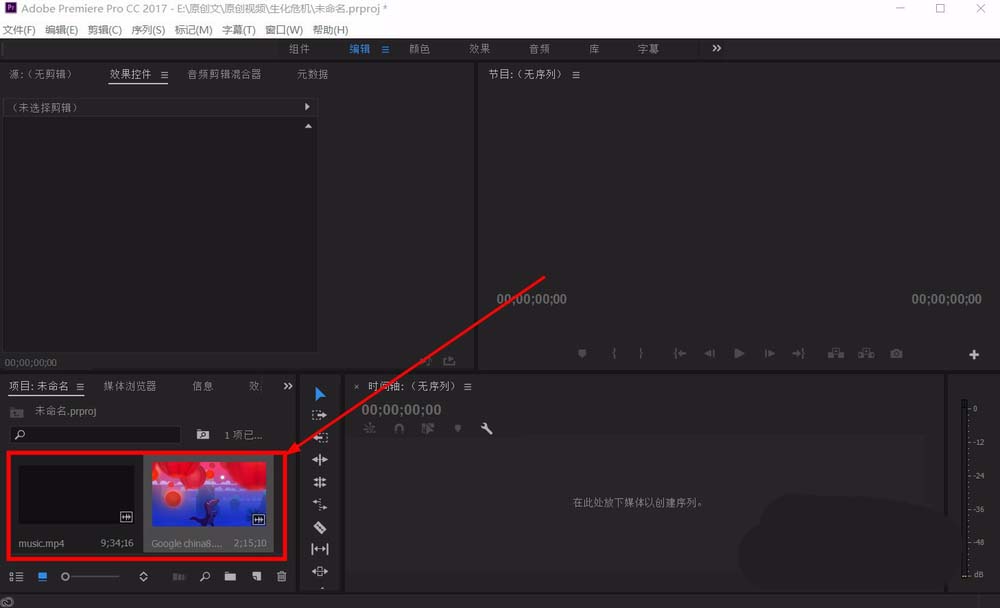 1、首先,我們開啟Premiere,導入我們需要制作GIF動圖的視頻文件,視頻文件會出現在項目窗口中。