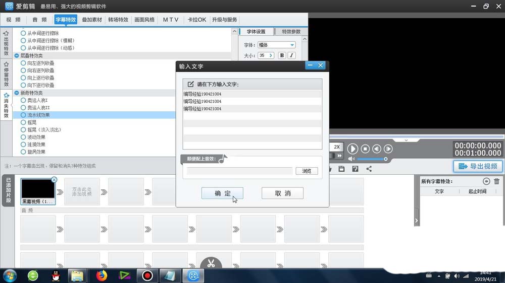 3、輸入文字,確定之后,文字就會(huì)出現(xiàn)在視頻預(yù)覽區(qū)域