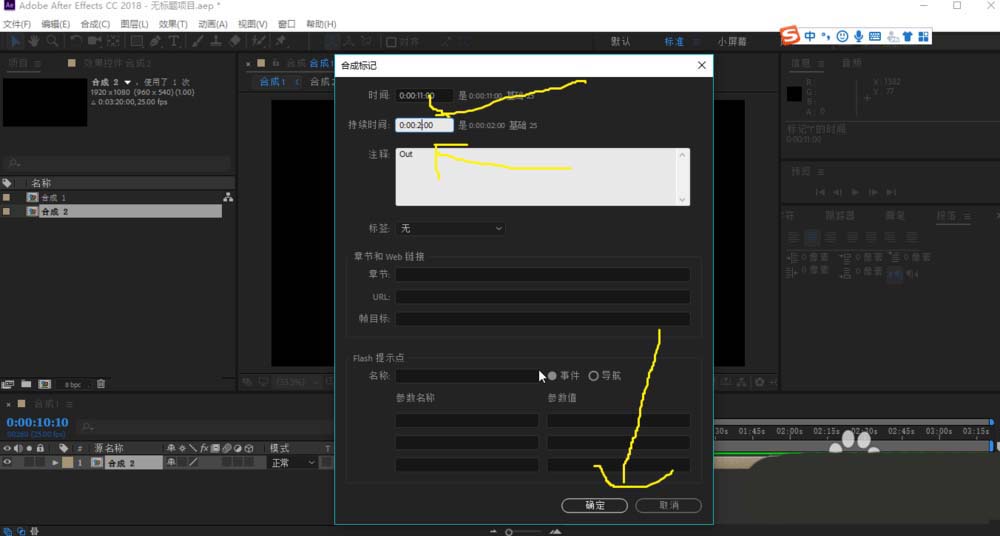 5、彈出設置窗口,一般只需更改持續(xù)時間和注釋兩項-點確定.IN標記點