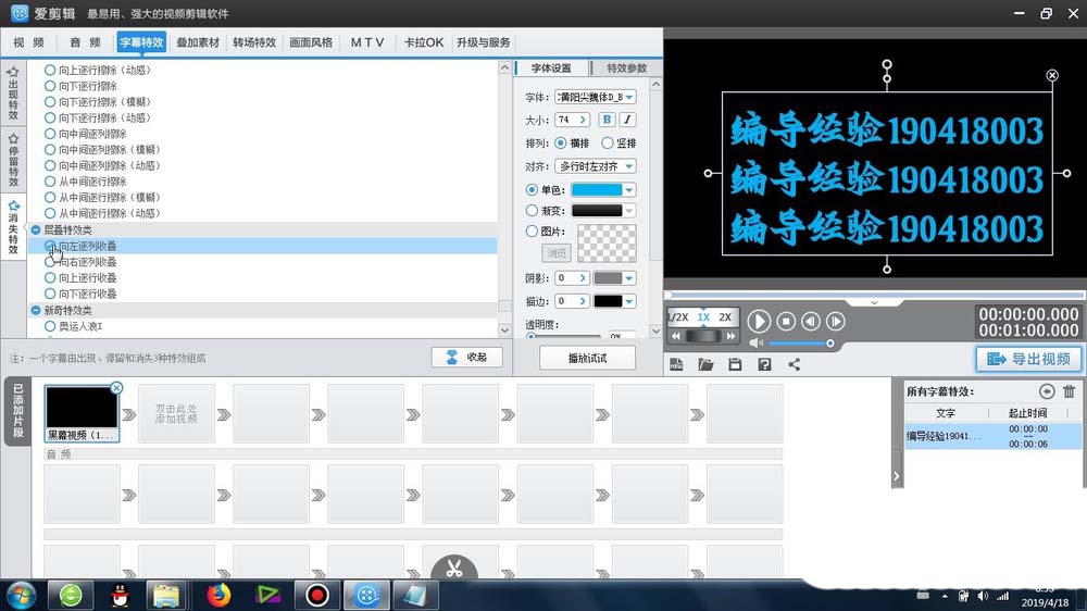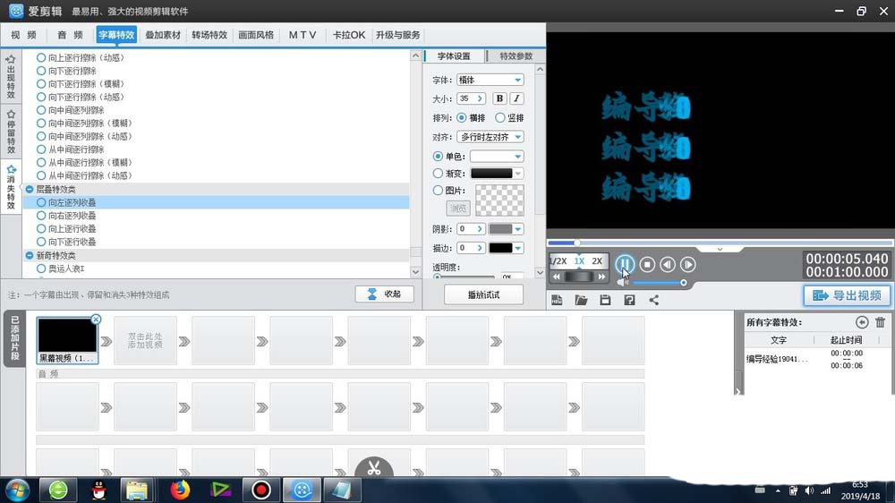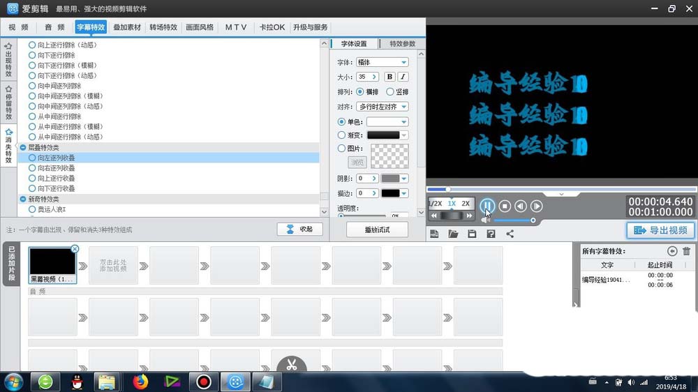 1、首先這個(gè)向左逐列收疊效果 -是在愛(ài)剪輯里面的字幕特效-消失特效-層疊特效類(lèi)-可以找到