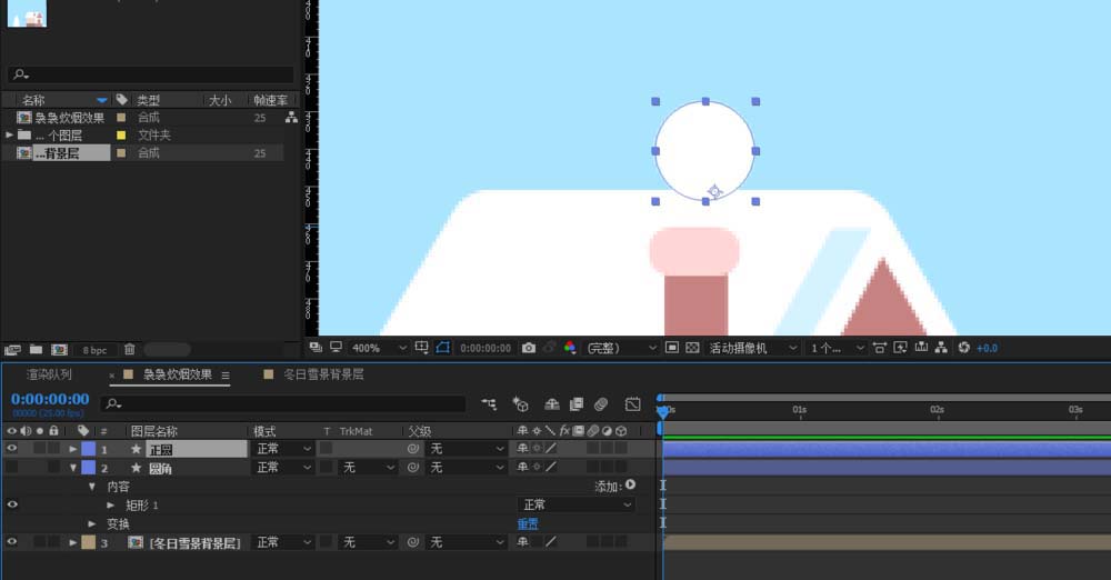 7、選中圓角矩形,按下U鍵,顯示所有關鍵幀,然后把兩個屬性的關鍵幀,分辨復制到之前畫的正圓上對應的屬性上。