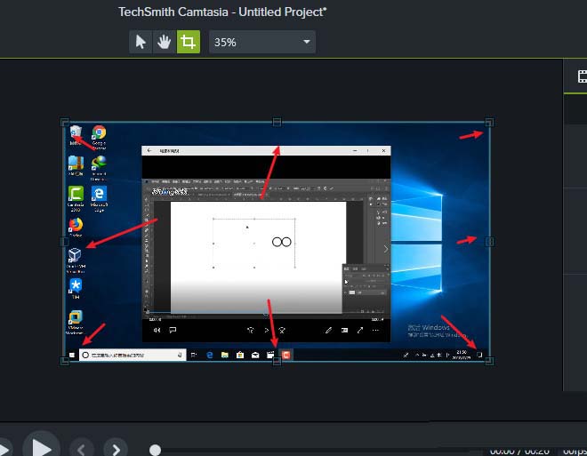 4、鼠標移動至畫面邊緣,帶變成雙箭頭即可拉動裁剪