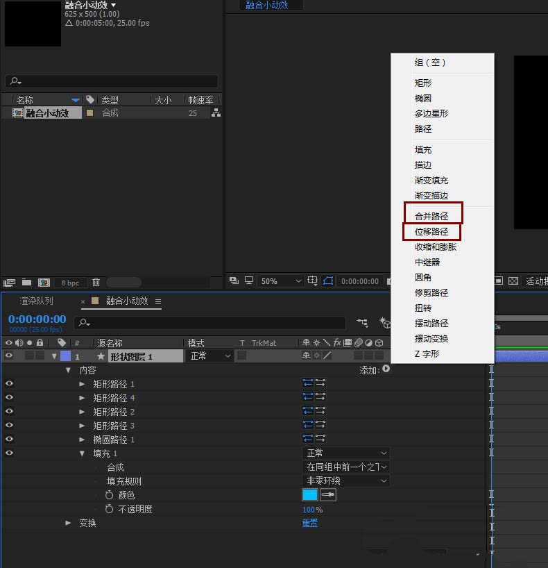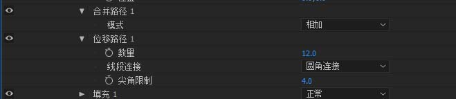 4、添加合并路徑和位移路徑,默認合并效果為相加,邊看效果,邊調整位移路徑。