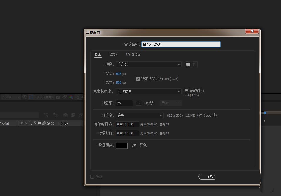 1、打開AE軟件,新建合成,命名融合小動效,調整相應的參數。