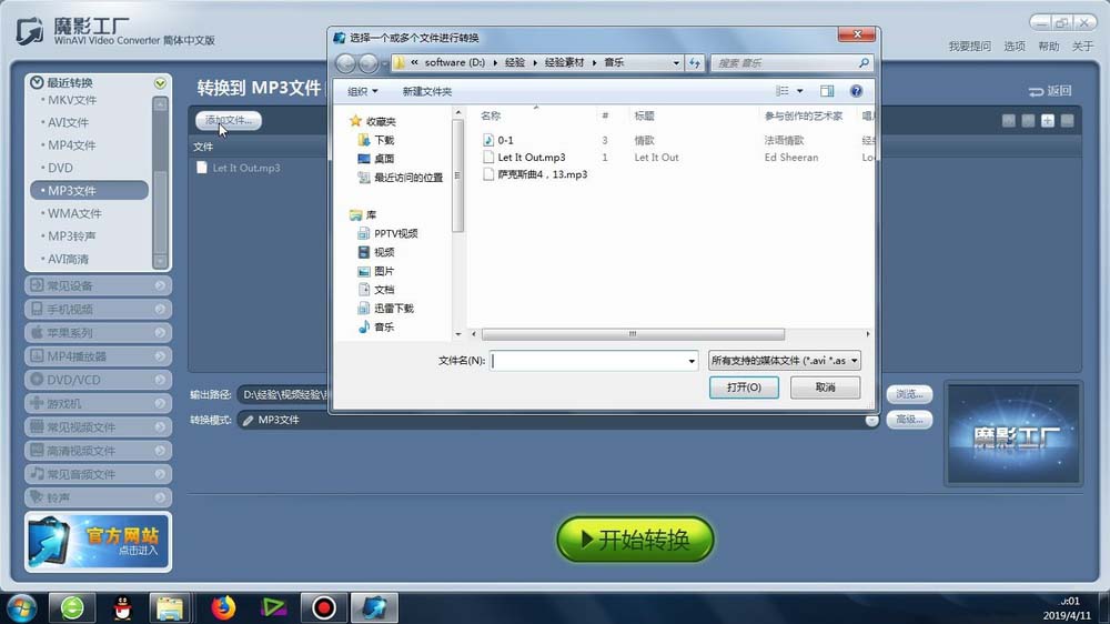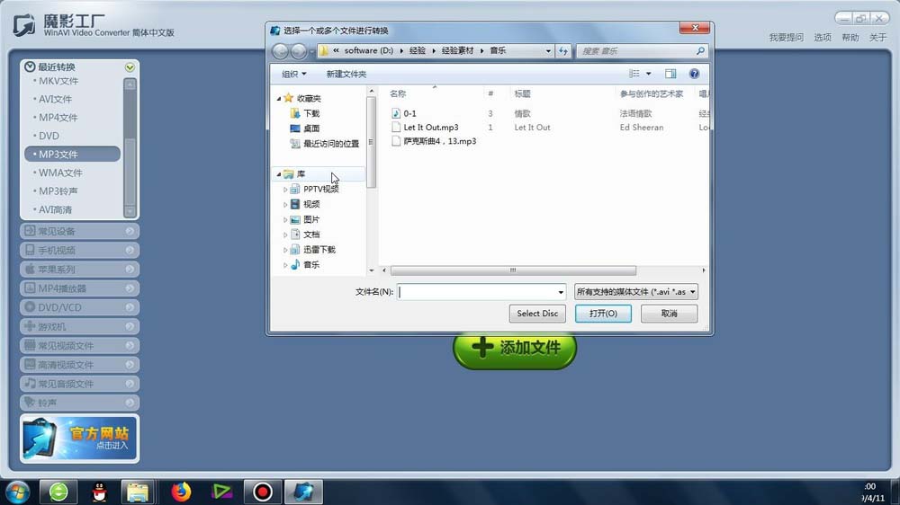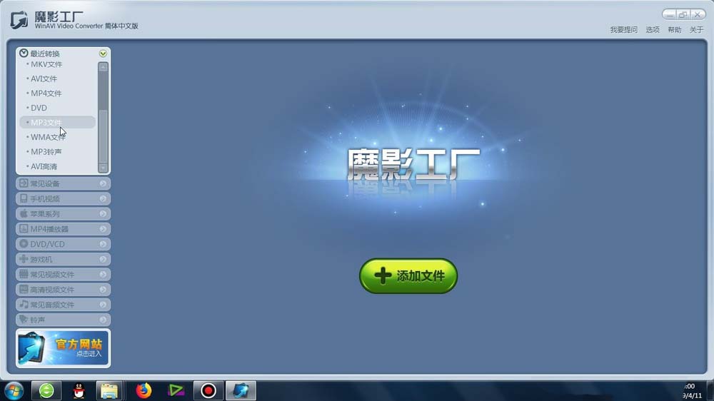 1、首先就是在魔影工廠的主界面的左側(cè)點(diǎn)擊選擇-常見音頻文件